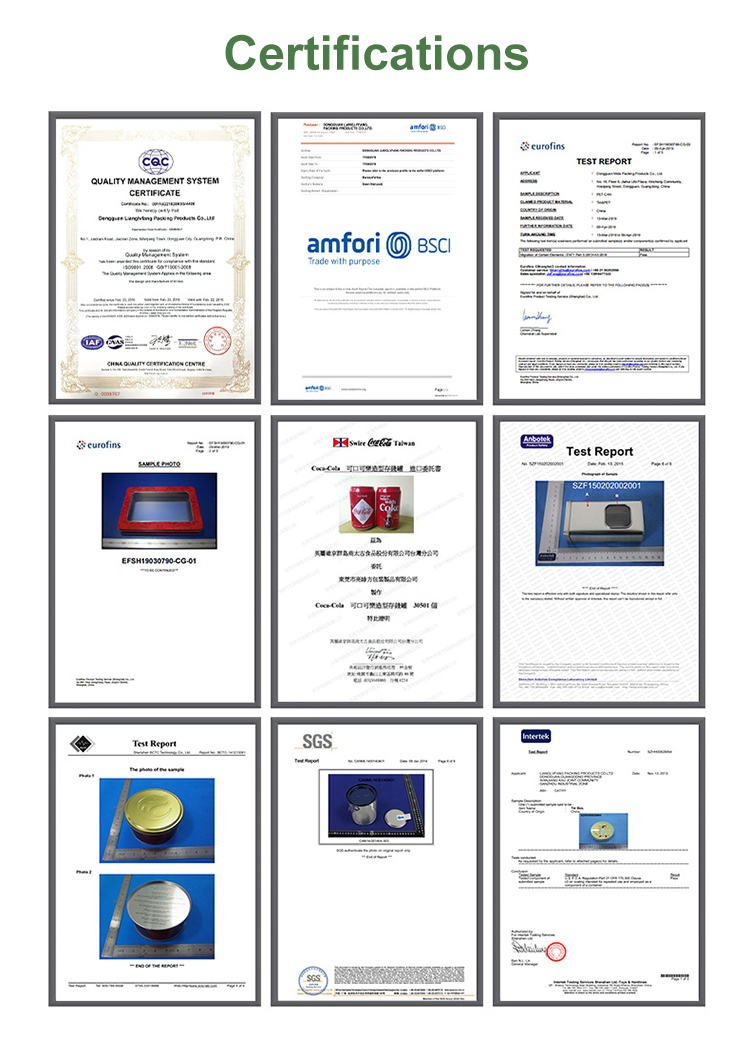 1. Are you trade company or manufacturer for tin box/can? Where your factory loacted?We are 100% tin box/can manufacturer with more than 8000 square meters workshop area. We located in Dongguan Guangdong province with very convenient transportation to access. It will take about 1 hour from Guangzhou city or Shenzhen city to our factory by driving.2. How do I get a sample for tin boxes or tin cans?Please confirm this with us and give us your company name, detailed address, zip code, telephone number courier service account number(Fed EX, UPS, DHL, TNT, etc). We shall do your best to help you.3. What is the MOQ ?Depends on what product. Usually our MOQ is from 3000. The quantity the more favorable the price is.4. What is your delivery time for tin boxes or tin can?It depends on your order item and quantity 20-30 days accordingly.