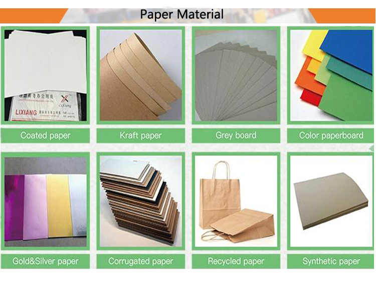 Material | Art Paper/Fancy Paper/Coated Paper/Kraft Paper/Greyboard/Corrugated board etc. | |||