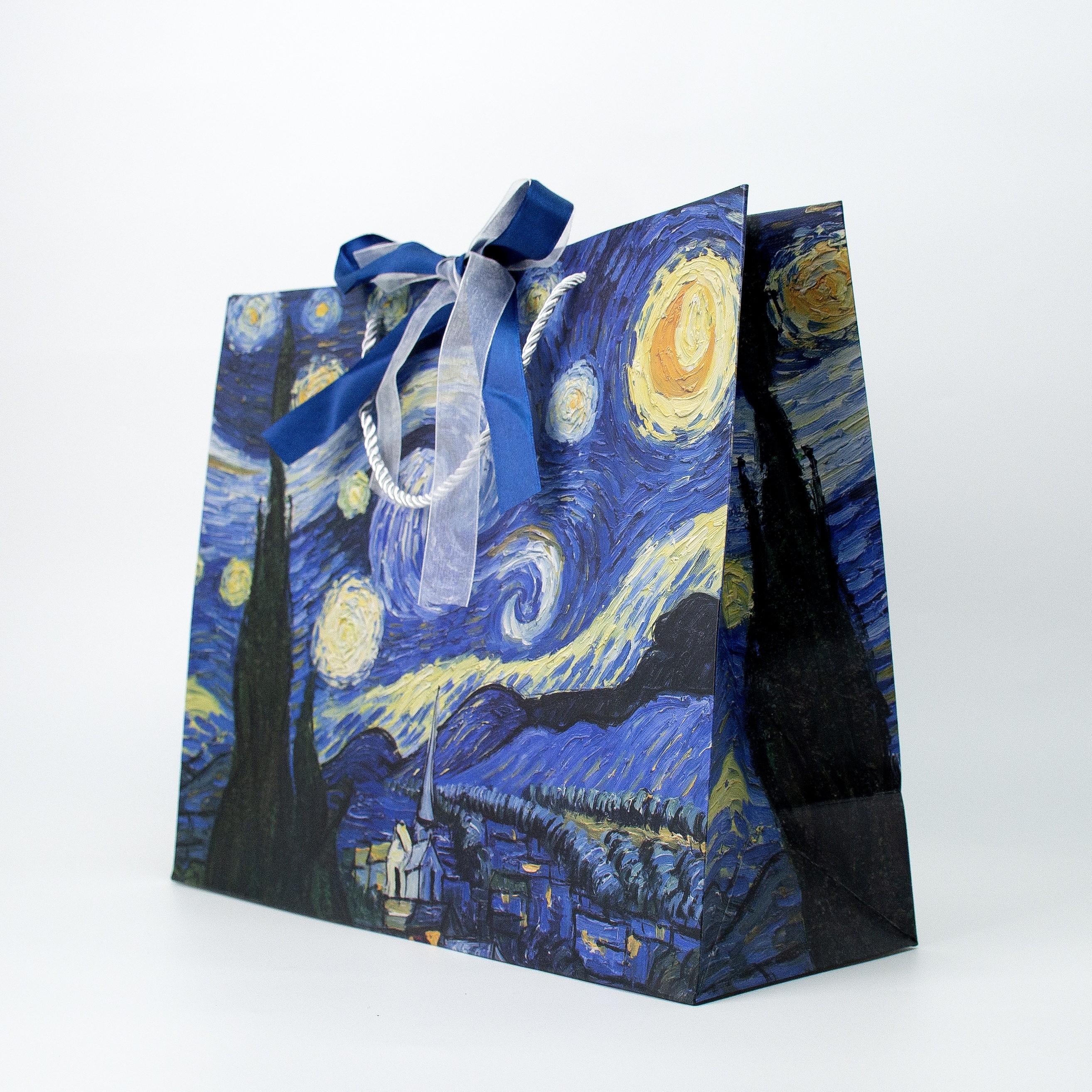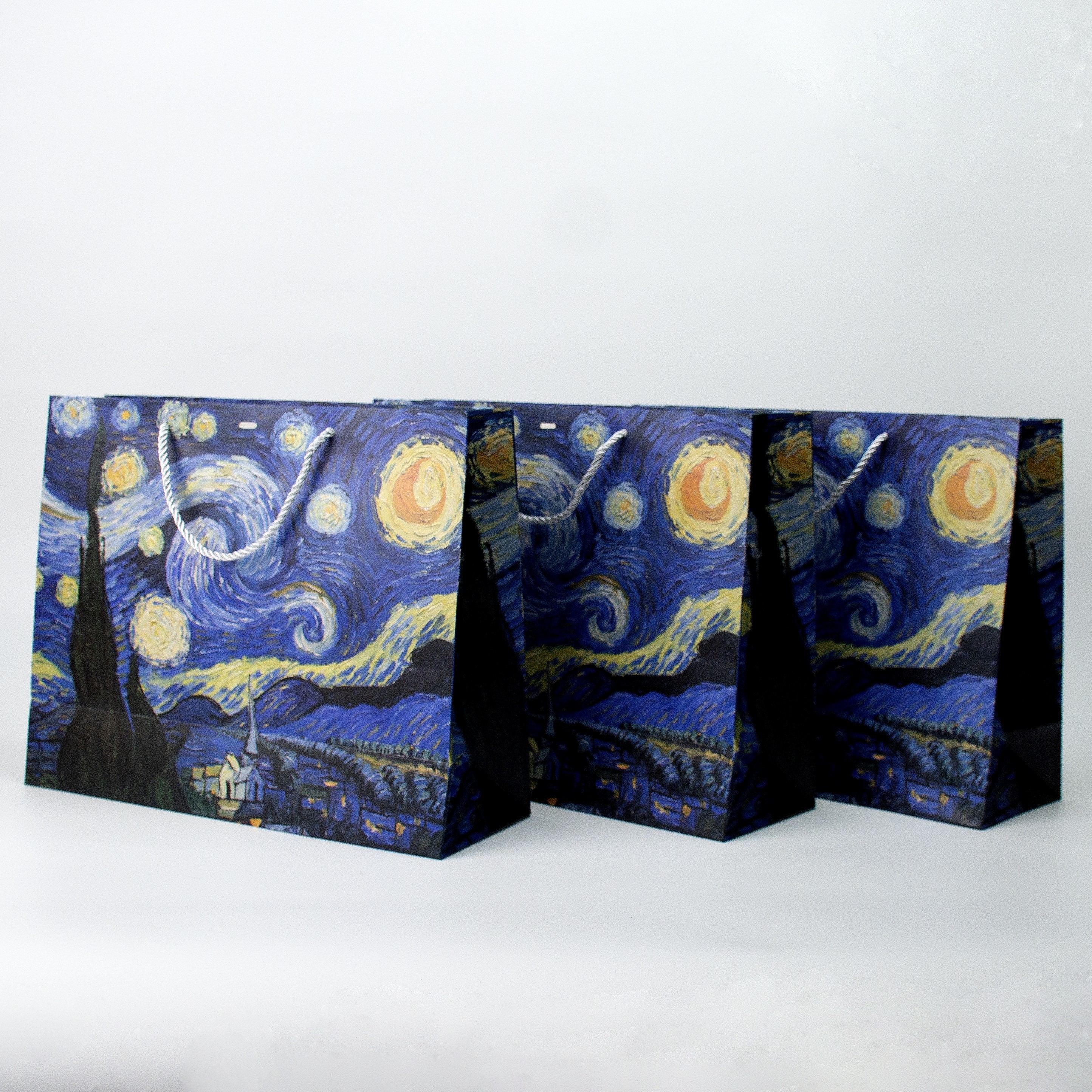 Wholesale In Stock custom printed Van Gogh famous paintings fashion paper tote bags organic recycled