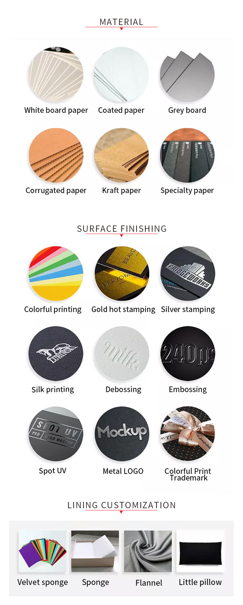 A4: Sure. Your Logo can show on the products by Printing, UV Varnishing, Hot Stamping, Embossing, Debossing, Silk-screen.