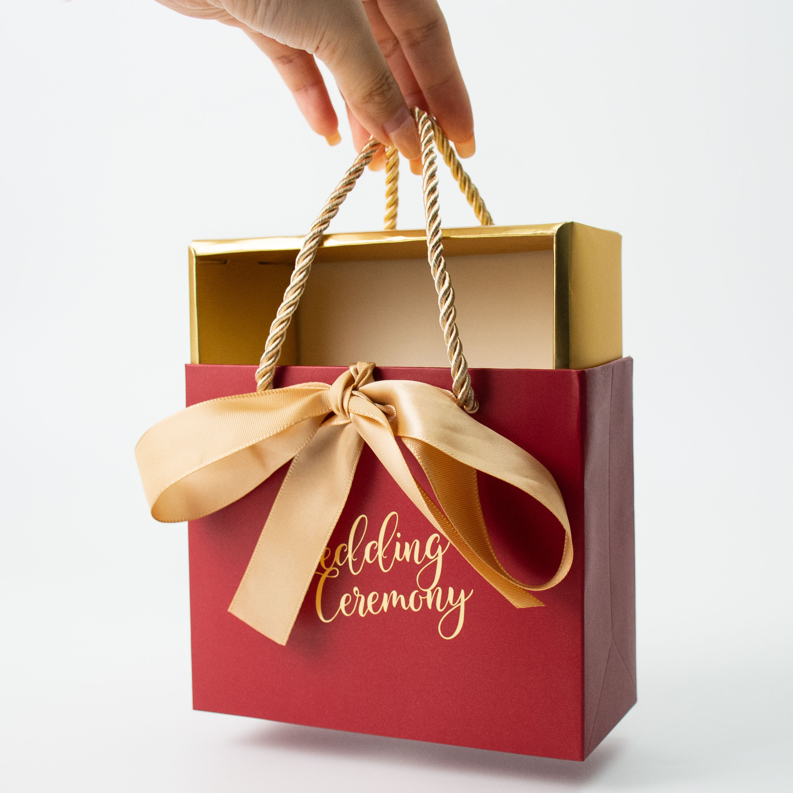 Custom gold hot stamping logo bow gift box set for jewelry marry cosmetics lipstick liquid foundatio