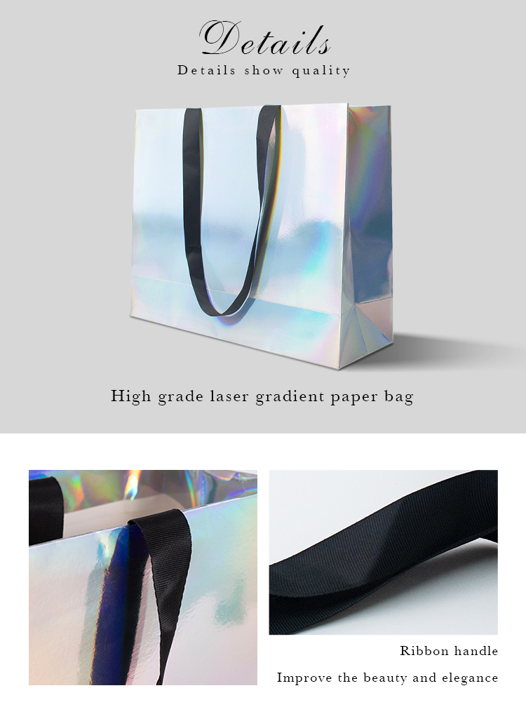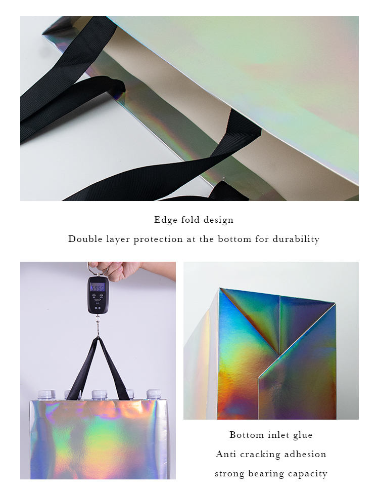 Custom your own logo shiny cardboard paper bag gifts shopping laser color holographic special paper