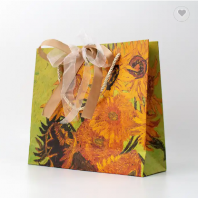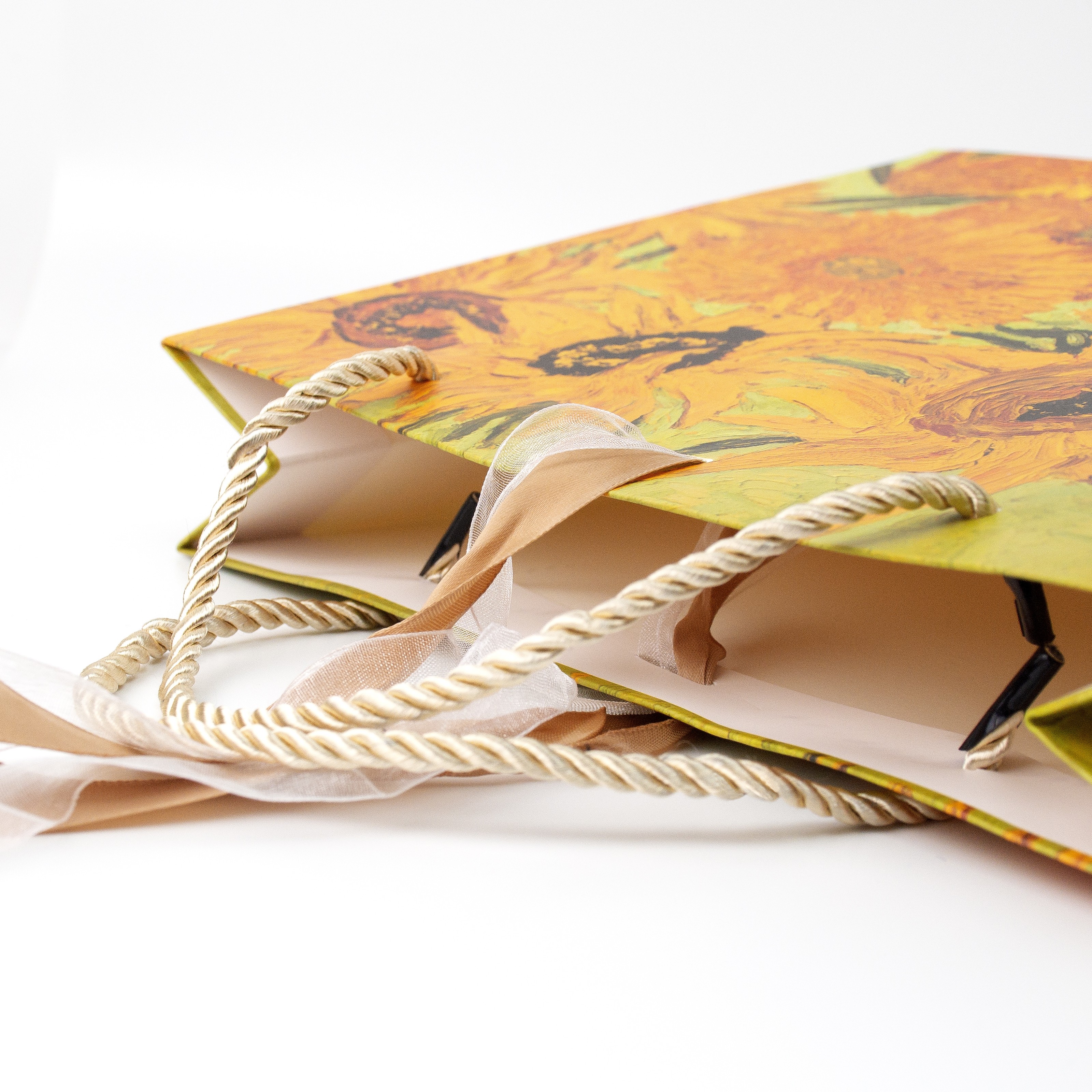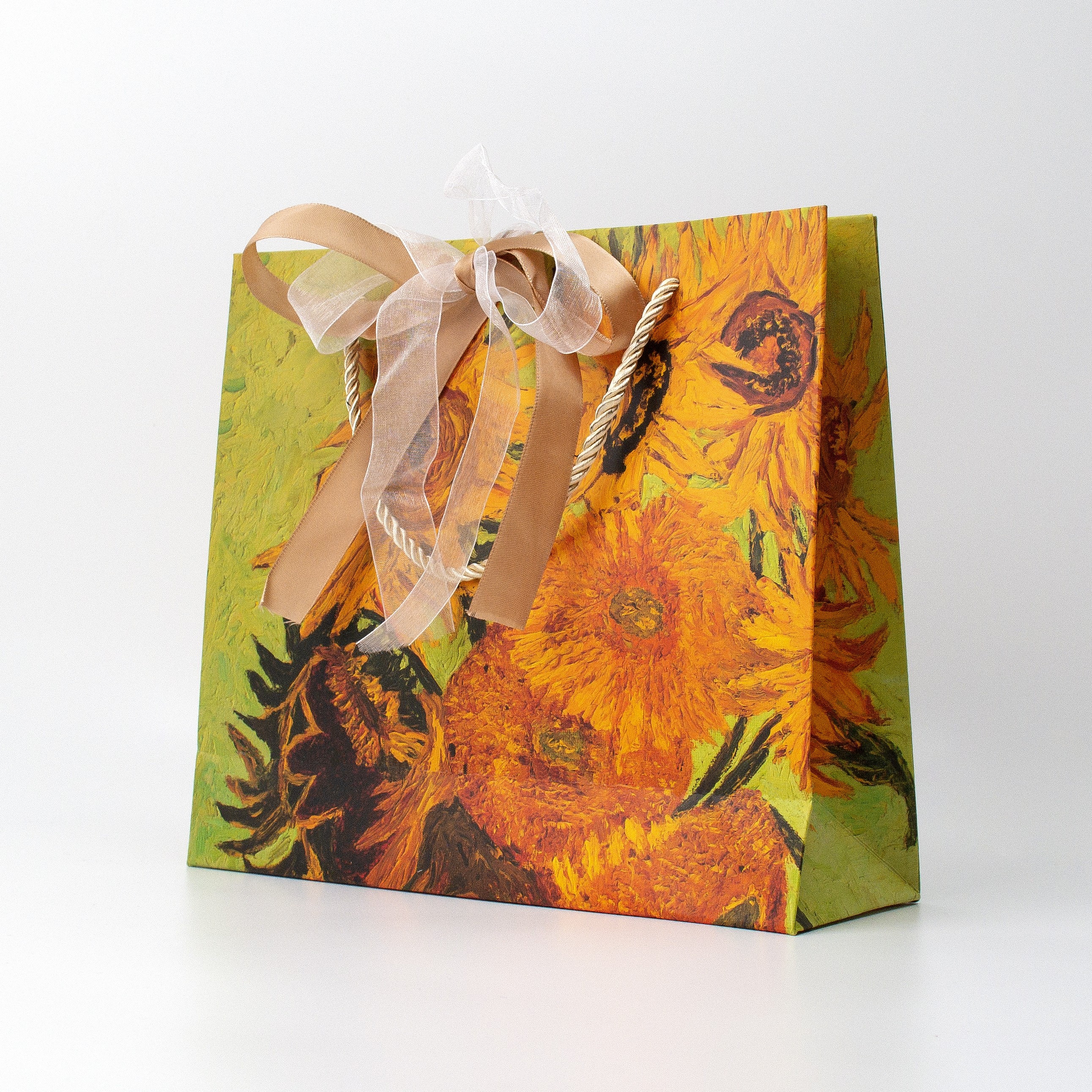 Van gogh sunflowers art botanical print valentine's day gift paper bag ribbon lace bow Cultural