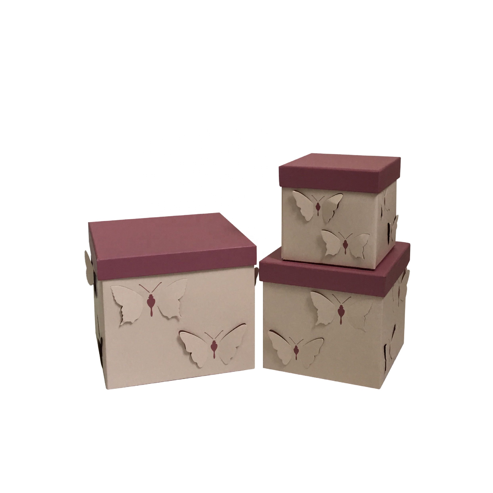 wholesale three-piece 3D hollow-out packaging square butterfly flower gift box For Mother's Day