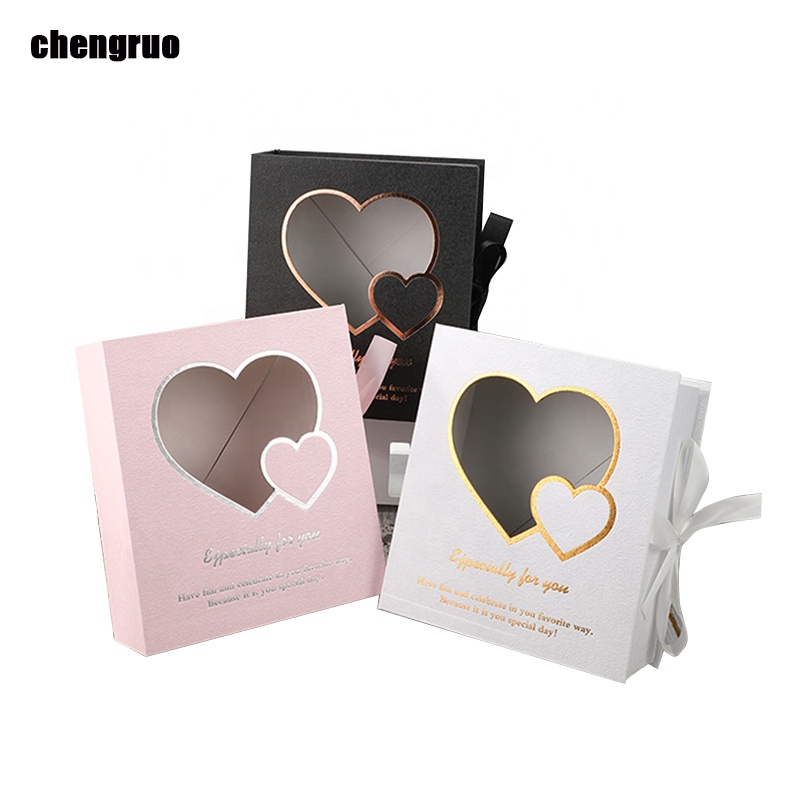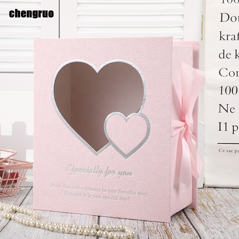 Chengruo OEM Caja Regalo San Valentin Verpackung Heart window Foldable Book Style Gift Packaging Pap