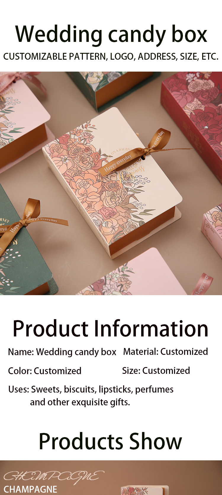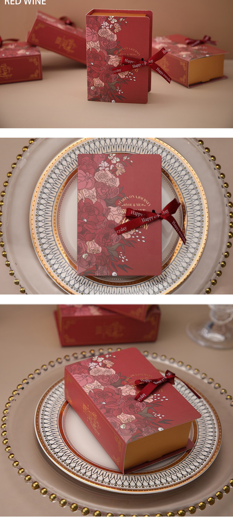 Luxury Vintage Book Shape Custom Pattern Cardboard Paper Handmade Folding Gift cookie Chocolate Wedd
