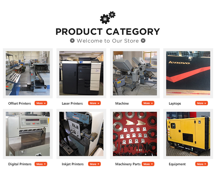 We offer you a wide range of brands machines, direct from printing companies from all Europe to exportmachinery into worldwide market. we analyze your needs, prepare feasibility study, provide you with acomplete turn-key solution for your business, from appraisals, purchasing ,dismantling and cleaning over-hauling, transportation, liability insurance coverage, Installation by qualified engineers, Training, Technical support, Original spare parts.