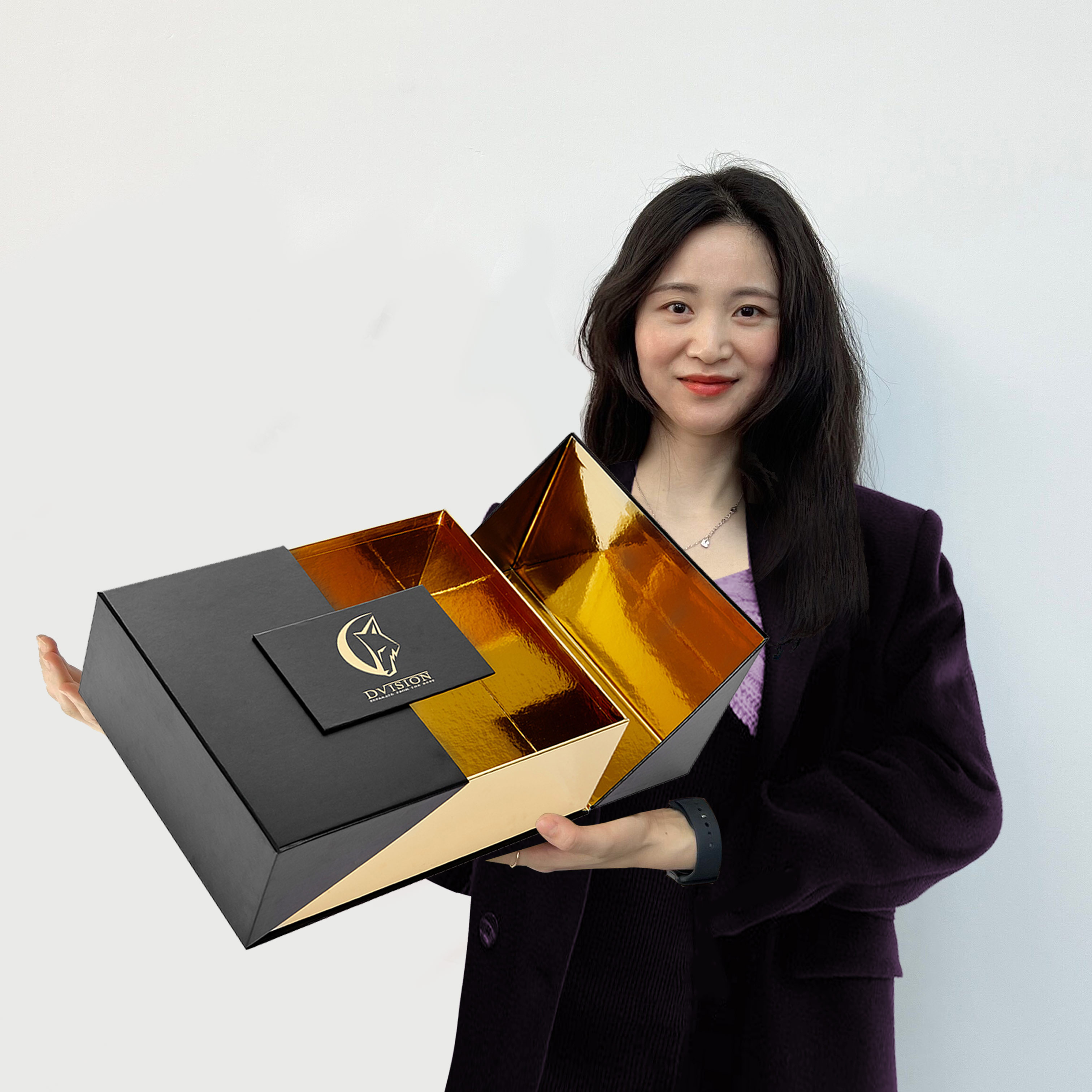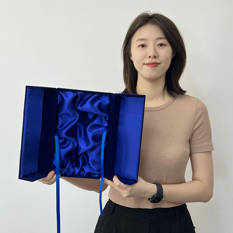 Luxury Design Custom Logo Velvet Paper Rigid Cardboard Packaging Open with Two Door Magnetic Closure Empty Gift Satin Box