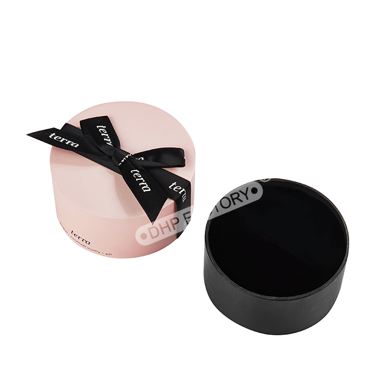 Luxury Small Pink Custom Printed Ring Paper Tube Gift Packaging Velvet Foam Inserts Jewelry Round Bo