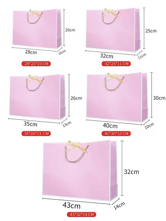 Birthday Wedding Favors Party Pink Gift Paper Shopping Bags With Ribbon Bow Tie 1). Best Quality 5-Layers Exporting Cartons or Customized Outer Packaging 2). CTN Size: Customized or based on actual weight and volume.