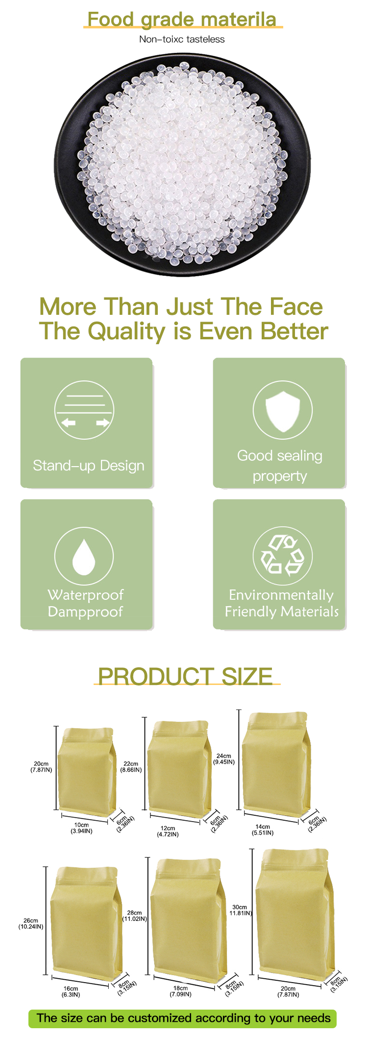 Compostable Flat Bottom Dog Cat Pet Food Ziplock Bag Mylar Food Tea Coffee Bean cookie Packaging Stand Up Zipper Pouch