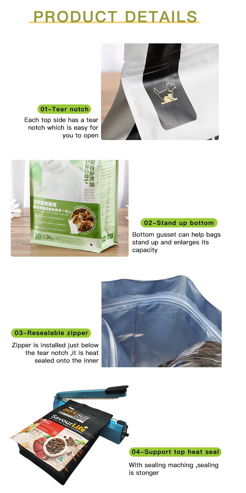 Customized pet dog food cat food ultra-large capacity packaging bag custom eight-side seal square food packaging bag