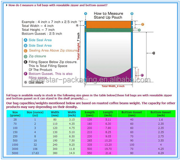 usage | It is for coffee, tea, snack, cake, candy, cookies, dried food packing. | |