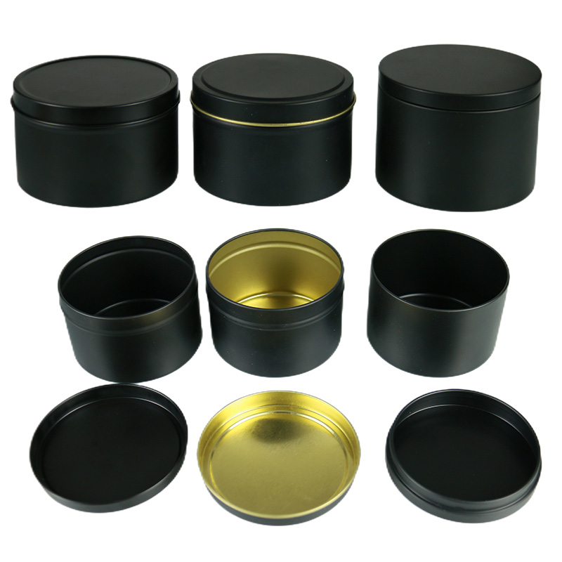 4oz 8oz black tin candle jar with wooden grain cover gold white black tin jar for tea