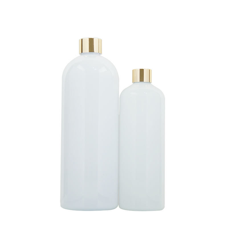 Food Grade White Round Shoulder 24mm 28mm Alcohol Cosmetic Water Shampoo Container Pet Plastic Toner Bottle with Screw Lid