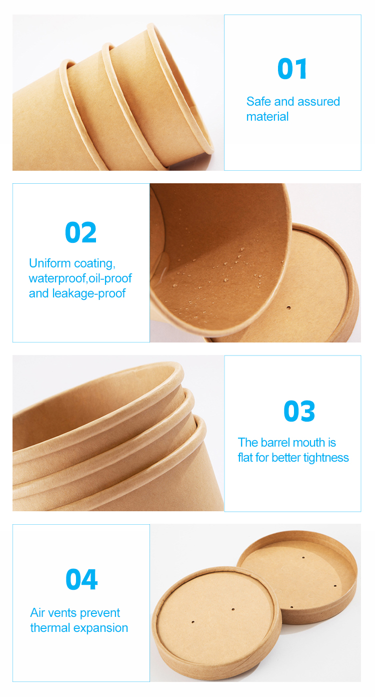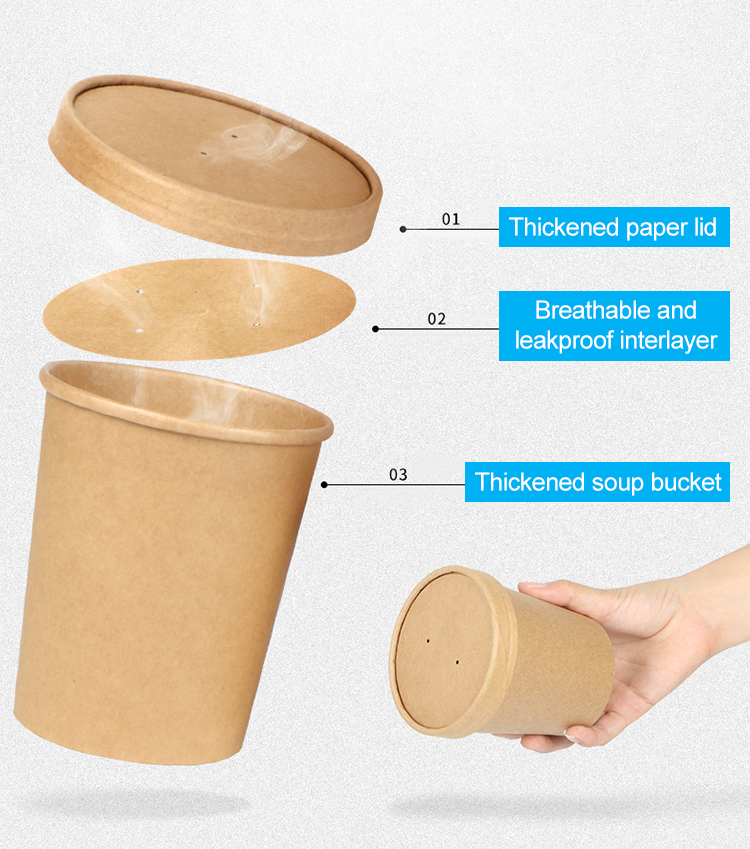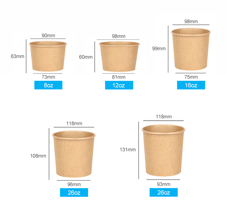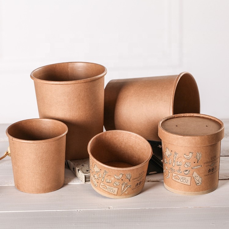 Custom Disposable Take away 20oz 24oz 32oz Kraft Paper Noodle Cup Hot Soup Bowl With Lid