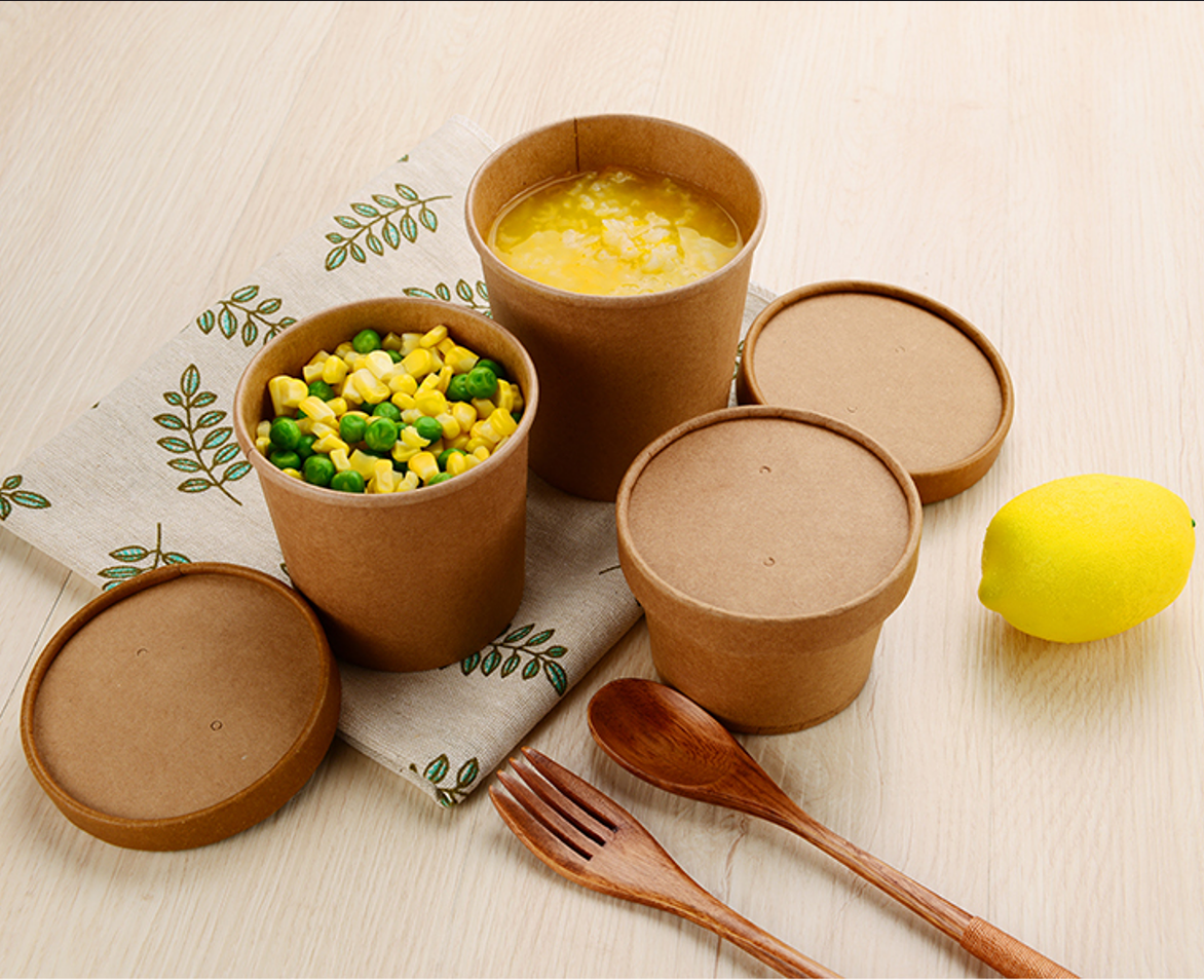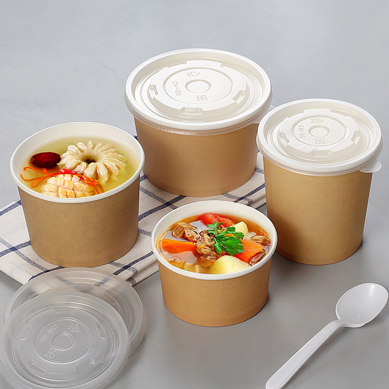 Disposable kraft paper soup salad bowl cups 16 oz with paper lid