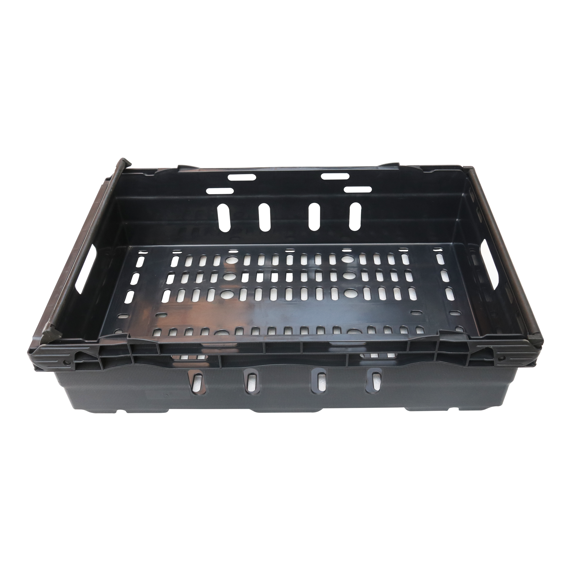 Maxinest bale arm, stack and nest containers in six sizes and capacities. The market-leading produce tray for retail grocery logistics and point of sale display. The simple bale arm construction protects the stored contents and allows the Containers to be nested when empty. This reduces the Containers height by approximately 76% and minimises storage space on return journeys.