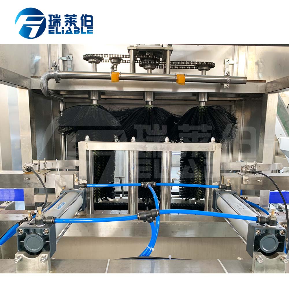 Inside brusher / Externer brusher / Automatic 5 Gallon rinsing filling capping machine / Automatic Cap sleeve label machine / Code