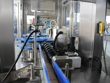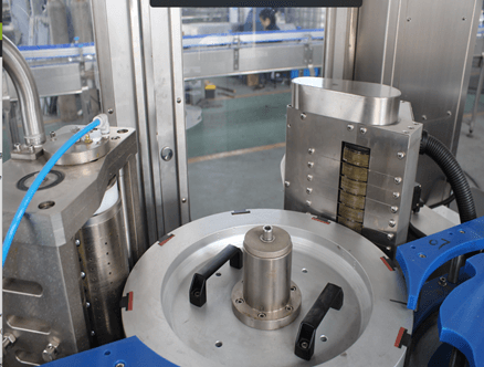 4.The dial wheel sends the bottle into the bottle holder, and the press head presses down the bottle to position it