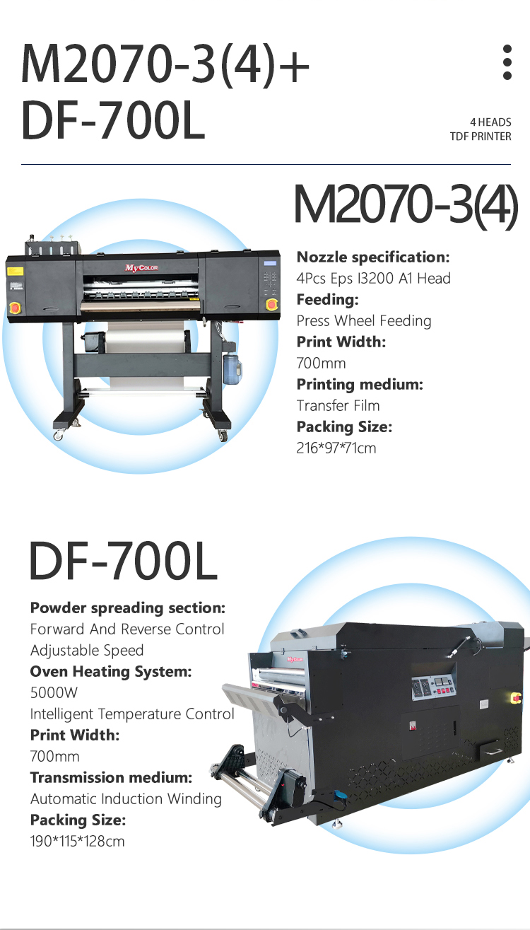 Mycolor White Ink Direct To Film Printer Powder Shaker DTF plotter head XP600/i3200 DTF Printer for garments tshirts apparels