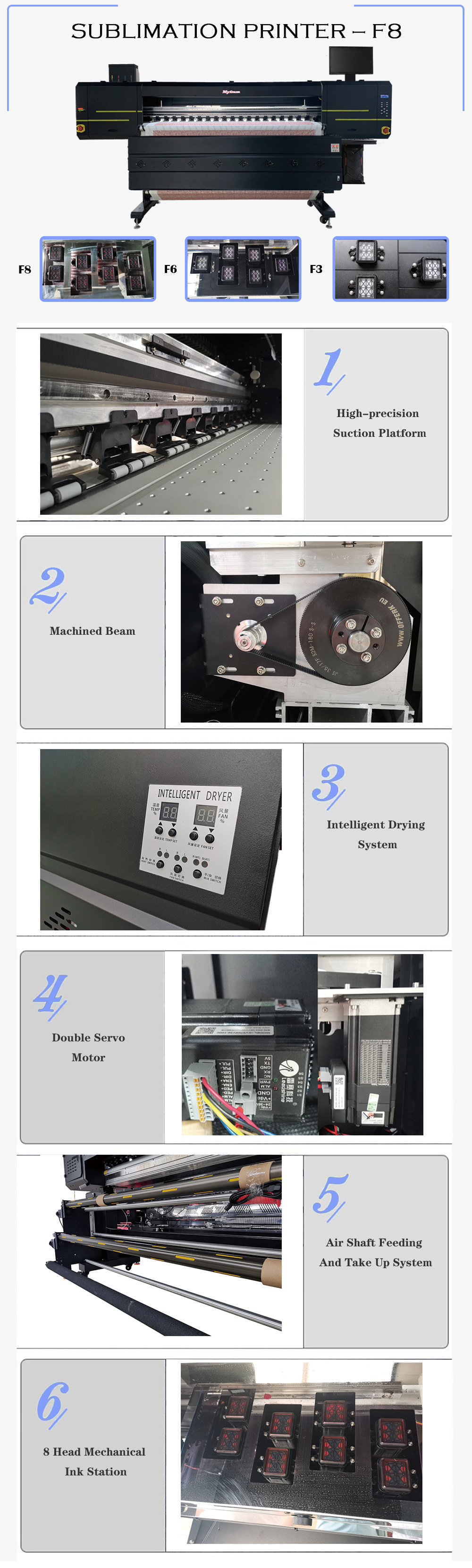 Wooden case for digital sublimation printer Package:312*75*73(LxWxH)cm G.W/N.W:380/320KG Roll to Roll 1.8 meters high speed digital textile printer with 8 Eps I3200 Sublimation printers for fabric
