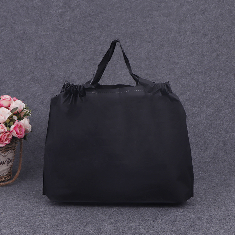 Custom Logo Printed Wholesale White Pink Drawstring Plastic Clothing Packaging Bags Matte PE Plastic Shopping Bag With Handle