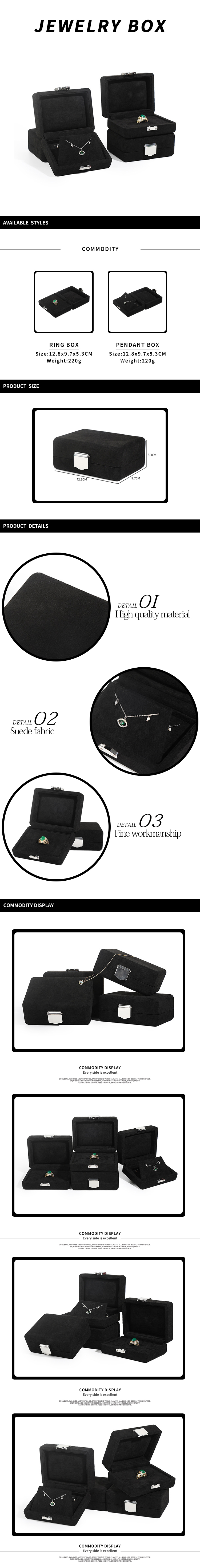 custom suede pendant ring box black packaging logo wedding bridesmaid gift trinket necklace travel square jewelry