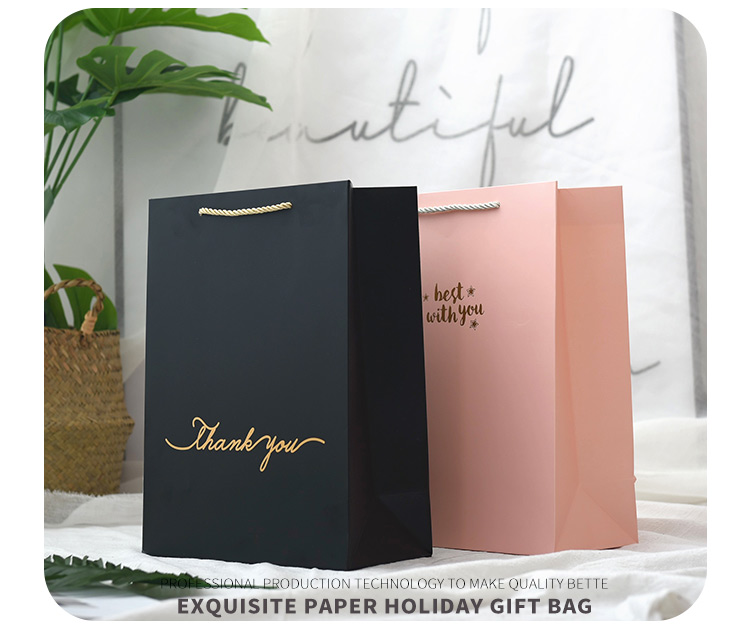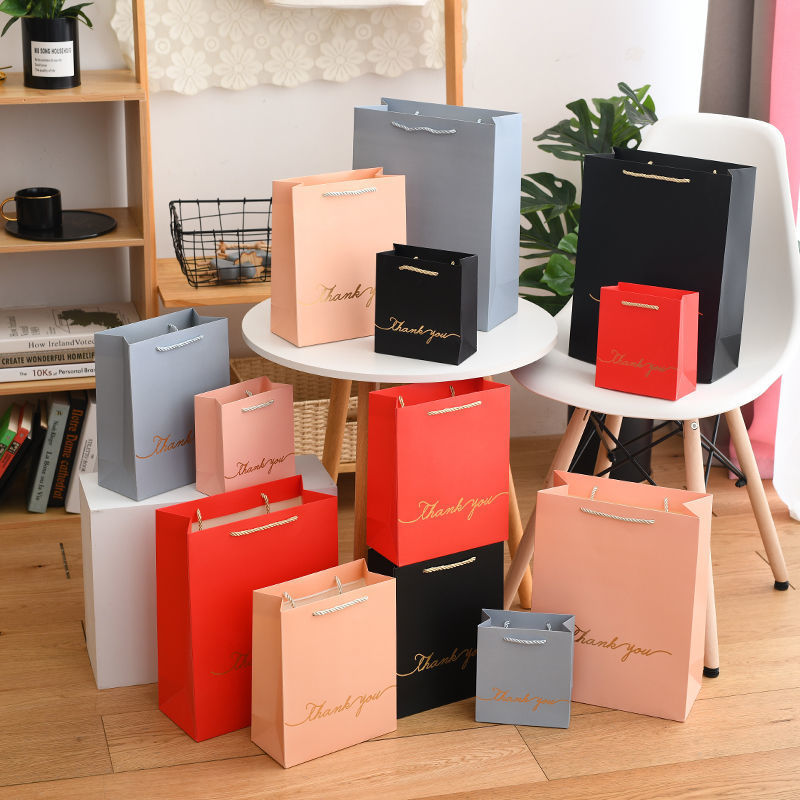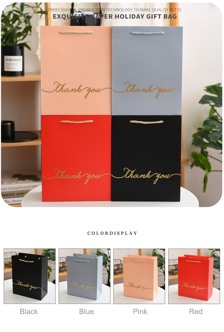 Thank You Gift Paper Bag Custom Jewelry Eyelash Lip Gloss Packaging Bag Box with Ribbon Handle Thank You Packaging Paper Bag