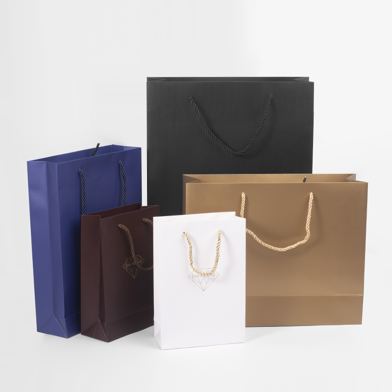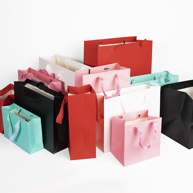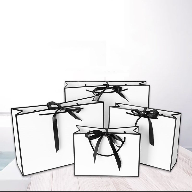 Luxury Ribbon Handle Boutique Shopping Packaging Paper Gift Bag Custom Printed Brown White Black Paper Bag with Your Own Logo