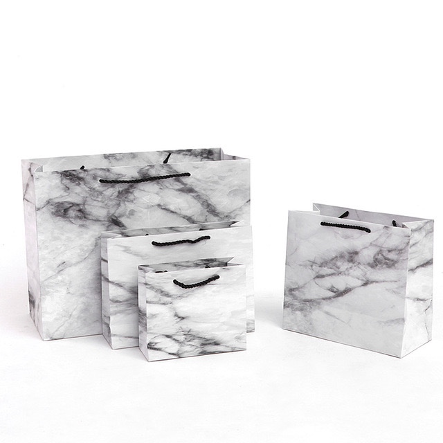 Elegent Luxury Shopping Gift Bag Private Label Custom Logo Eyelashes Clothes Jewelry Cosmetic Packaging Marble Paper Bag