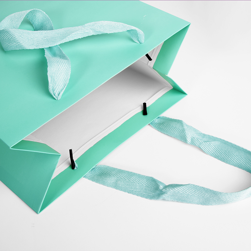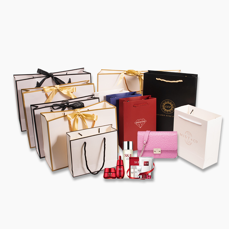 Thank You Gift Paper Bag Custom Jewelry Eyelash Lip Gloss Packaging Bag Box with Ribbon Handle Thank You Packaging Paper Bag