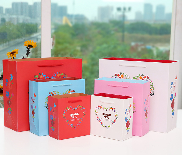 Thank You Gift Handle Shopping Packaging Bags Custom Logo Wedding Kraft Paper Festival Love Gift Bag with Handle