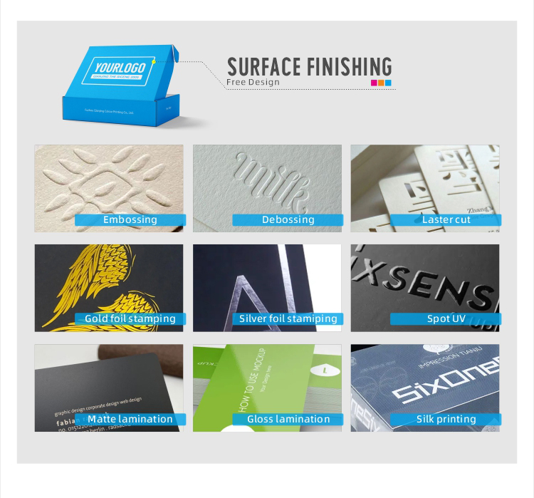 Embossing, Debossing, Stamping, Spot UV, Lamination,CMYK+ Pantone