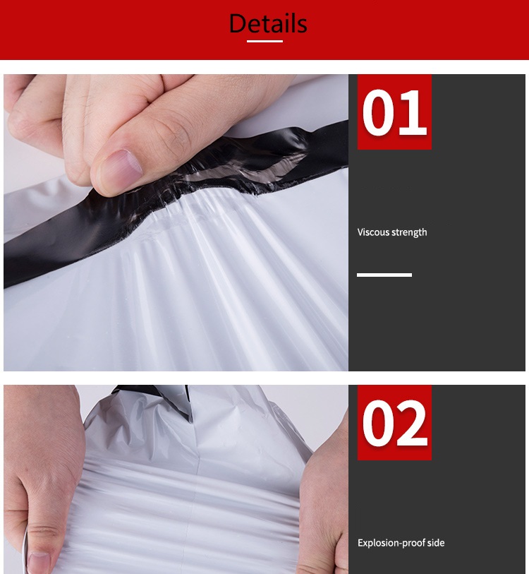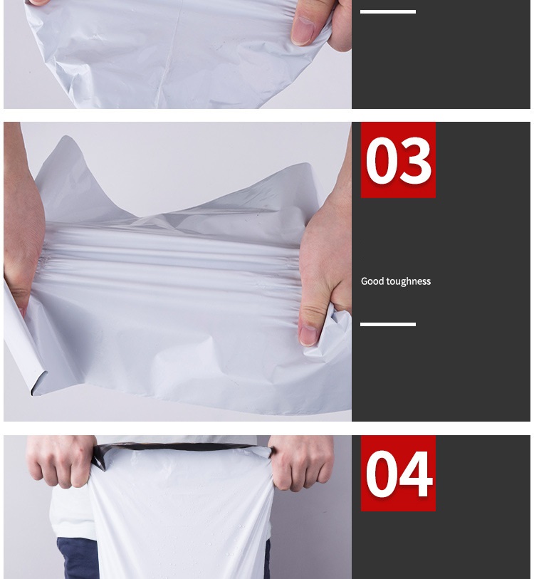 We use virgin PE material which the poly mailer quality is premium good, high tensile strength, no bad smell