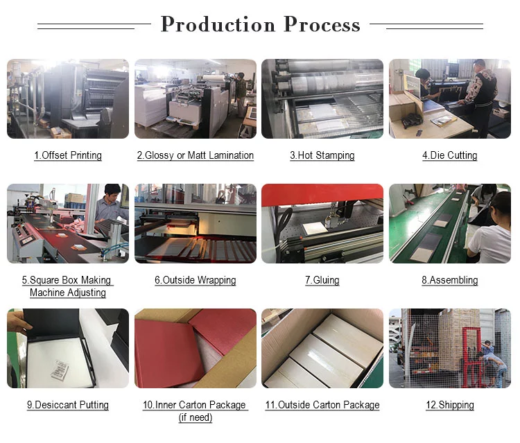Our company covers 2,300 square meters with 70 workers. Our current annual turnover is around USD 2.5 million.Besides the existing full set of equipment, such as automatic paper box machines, German made Heidelberg printing machines, lamination machines and some after printing treatment machines, we will constantly introduce new equipment and technologies to better serve our customers.
