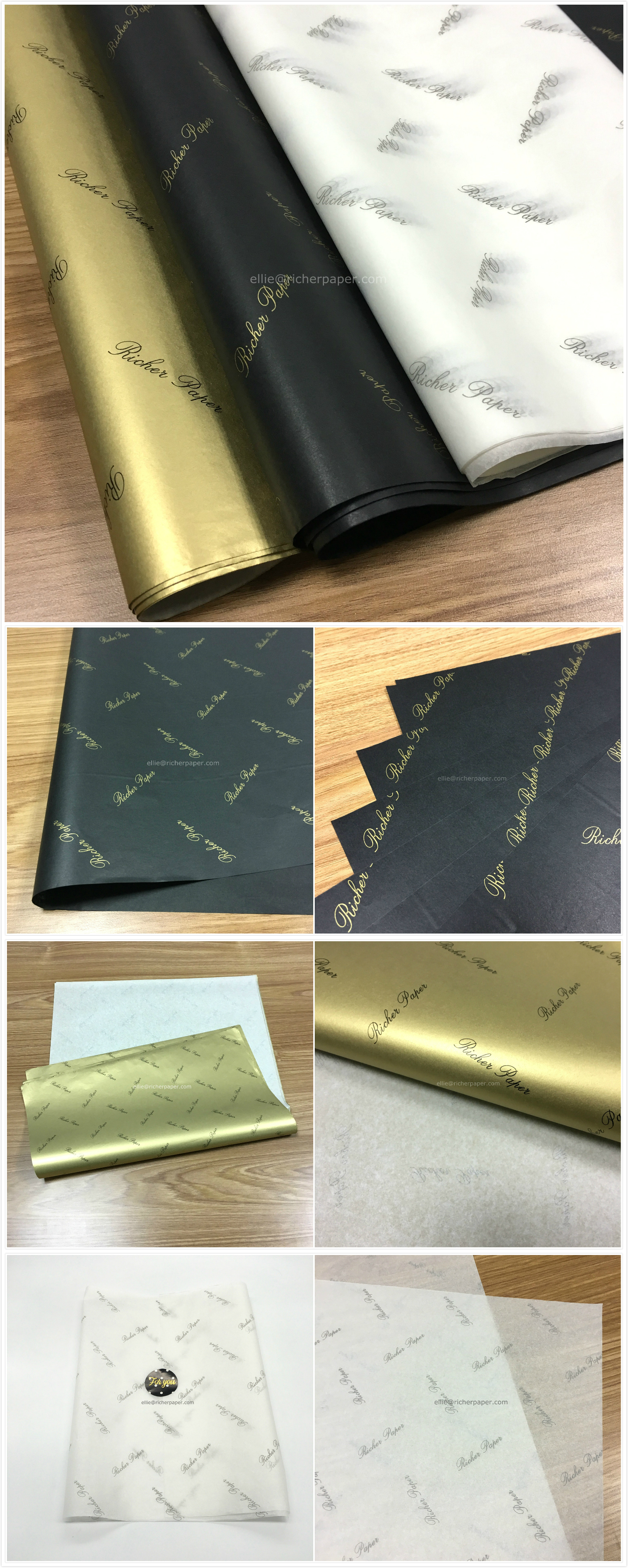 custom logo Luxury packing black Golden gift silk Wrapping tissue Paper